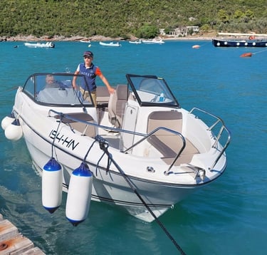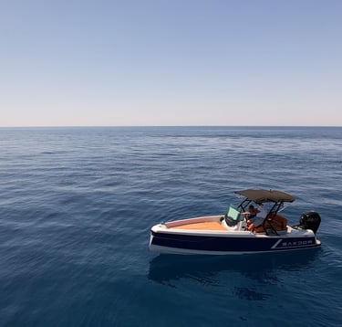 Our Cap Camarat 6.5 with 200hp has a great size and can host up to 8-10 persons. There is a sunroof, an easy-access ladder for snorkeling trips, and blankets for the occasional chilly evening. Obviously we take safety very serious so there are plenty life jackets on board.