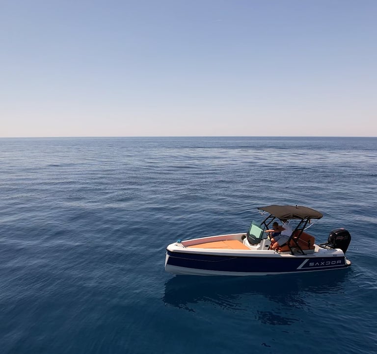 Other boats include for instance the Saxdor 200 with 115hp, which can host 3-6 persons incl. skipper. There is a lounge deck for sun tanning, but also a bimini for some shade on hot summer days. The smaller size of the boat makes it ideal for water sports like water skiing.